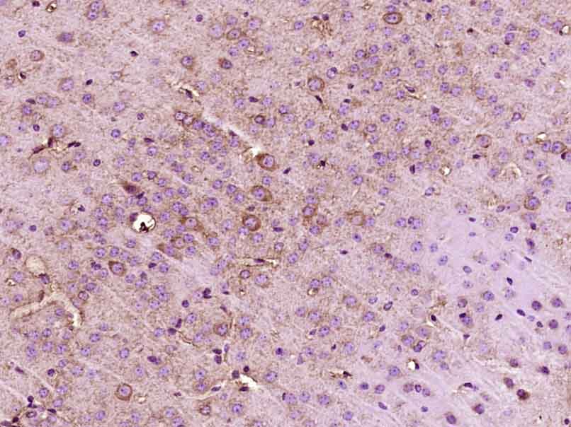 Paraformaldehyde-fixed, paraffin embedded (Mouse brain); Antigen retrieval by boiling in sodium citrate buffer (pH6.0) for 15min; Block endogenous peroxidase by 3% hydrogen peroxide for 20 minutes; Blocking buffer (normal goat serum) at 37°C for 30min; Antibody incubation with (PER2) Polyclonal Antibody, Unconjugated (bs-3927R) at 1:400 overnight at 4°C, followed by operating according to SP Kit(Rabbit) (sp-0023) instructionsand DAB staining.