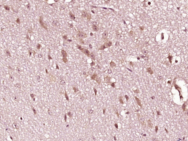Paraformaldehyde-fixed, paraffin embedded (Mouse brain); Antigen retrieval by boiling in sodium citrate buffer (pH6.0) for 15min; Block endogenous peroxidase by 3% hydrogen peroxide for 20 minutes; Blocking buffer (normal goat serum) at 37°C for 30min; Antibody incubation with (GLO1) Polyclonal Antibody, Unconjugated (bs-5131R) at 1:400 overnight at 4°C, followed by operating according to SP Kit(Rabbit) (sp-0023) instructions and DAB staining.