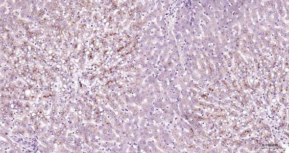 Paraformaldehyde-fixed, paraffin embedded Mouse Liver; Antigen retrieval by boiling in sodium citrate buffer (pH6.0) for 15 min; Antibody incubation with LAMP2? Polyclonal Antibody, Unconjugated (bs-2379R) at 1:200 overnight at 4°C, followed by conjugation to the bs-0295G-HRP and DAB (C-0010) staining.