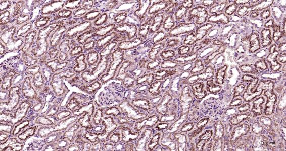 Paraformaldehyde-fixed, paraffin embedded Mouse Kidney; Antigen retrieval by boiling in sodium citrate buffer (pH6.0) for 15 min; Antibody incubation with LAMP2? Polyclonal Antibody, Unconjugated (bs-2379R) at 1:200 overnight at 4°C, followed by conjugation to the bs-0295G-HRP and DAB (C-0010) staining.