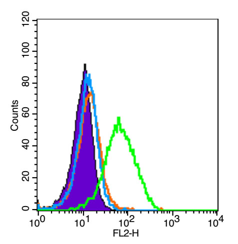 Secondary Antibody (white blue line): Goat anti-rabbit IgG-PE