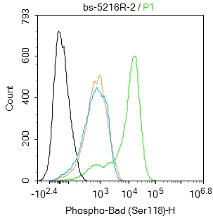 Primary Antibody (green line): Rabbit Anti-Phospho-Bad (Ser118) antibody (bs-5216R)