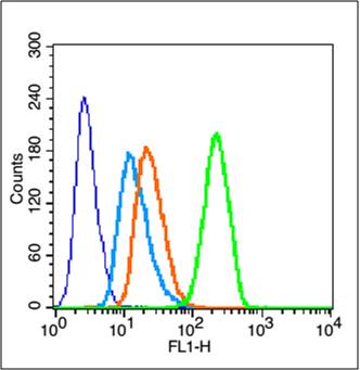 Secondary Antibody (white blue line): Goat anti-rabbit IgG-FITC, Dilution: 1μg /test.