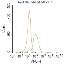 Primary Antibody (green line): Rabbit Anti-MHC Class II/HLA DMB/AF647 Conjugated antibody (bs-4107R-AF647)