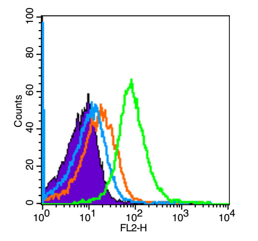 Secondary Antibody (white blue line): Goat anti-rabbit IgG-PE