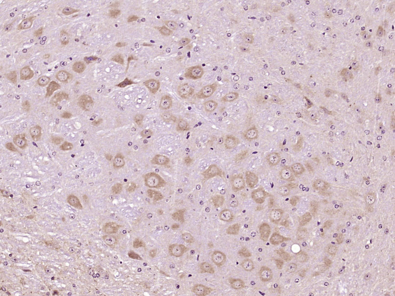 Paraformaldehyde-fixed, paraffin embedded (Mouse brain); Antigen retrieval by boiling in sodium citrate buffer (pH6.0) for 15min; Block endogenous peroxidase by 3% hydrogen peroxide for 20 minutes; Blocking buffer (normal goat serum) at 37°C for 30min; Antibody incubation with (LRP5) Polyclonal Antibody, Unconjugated (bs-4117R) at 1:400 overnight at 4°C, followed by operating according to SP Kit(Rabbit) (sp-0023) instructionsand DAB staining.