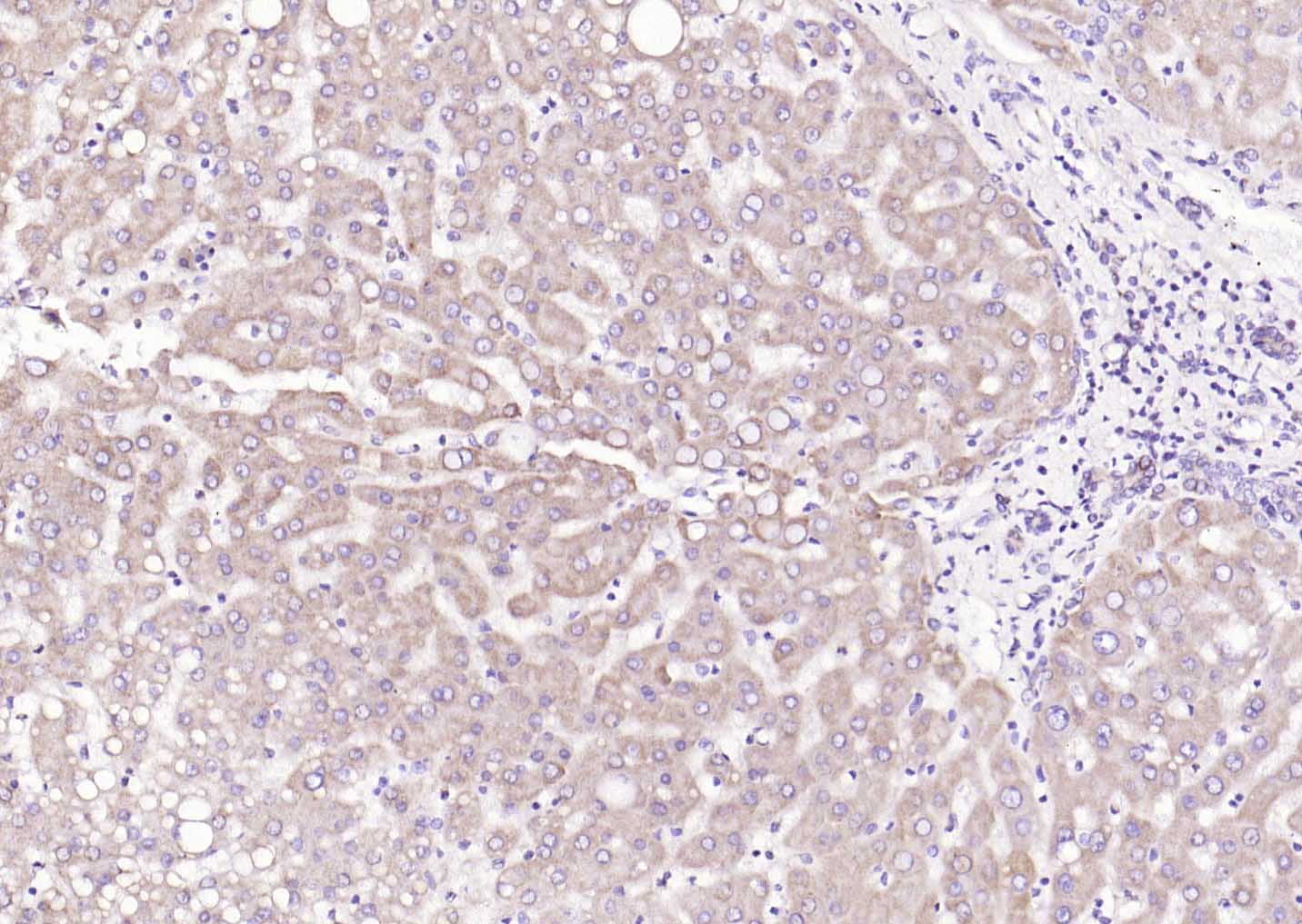 Paraformaldehyde-fixed, paraffin embedded (human liver); Antigen retrieval by boiling in sodium citrate buffer (pH6.0) for 15min; Block endogenous peroxidase by 3% hydrogen peroxide for 20 minutes; Blocking buffer (normal goat serum) at 37°C for 30min; Antibody incubation with (LRP5) Polyclonal Antibody, Unconjugated (bs-4117R) at 1:200 overnight at 4°C, followed by operating according to SP Kit(Rabbit) (sp-0023) instructionsand DAB staining.