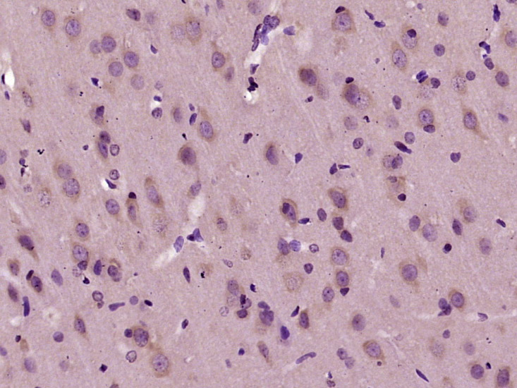 Paraformaldehyde-fixed, paraffin embedded (rat brain tissue); Antigen retrieval by boiling in sodium citrate buffer (pH6.0) for 15min; Block endogenous peroxidase by 3% hydrogen peroxide for 20 minutes; Blocking buffer (normal goat serum) at 37°C for 30min; Antibody incubation with (Tau (Ser721)) Polyclonal Antibody, Unconjugated (bs-5415R) at 1:400 overnight at 4°C, followed by operating according to SP Kit(Rabbit) (sp-0023) instructionsand DAB staining.