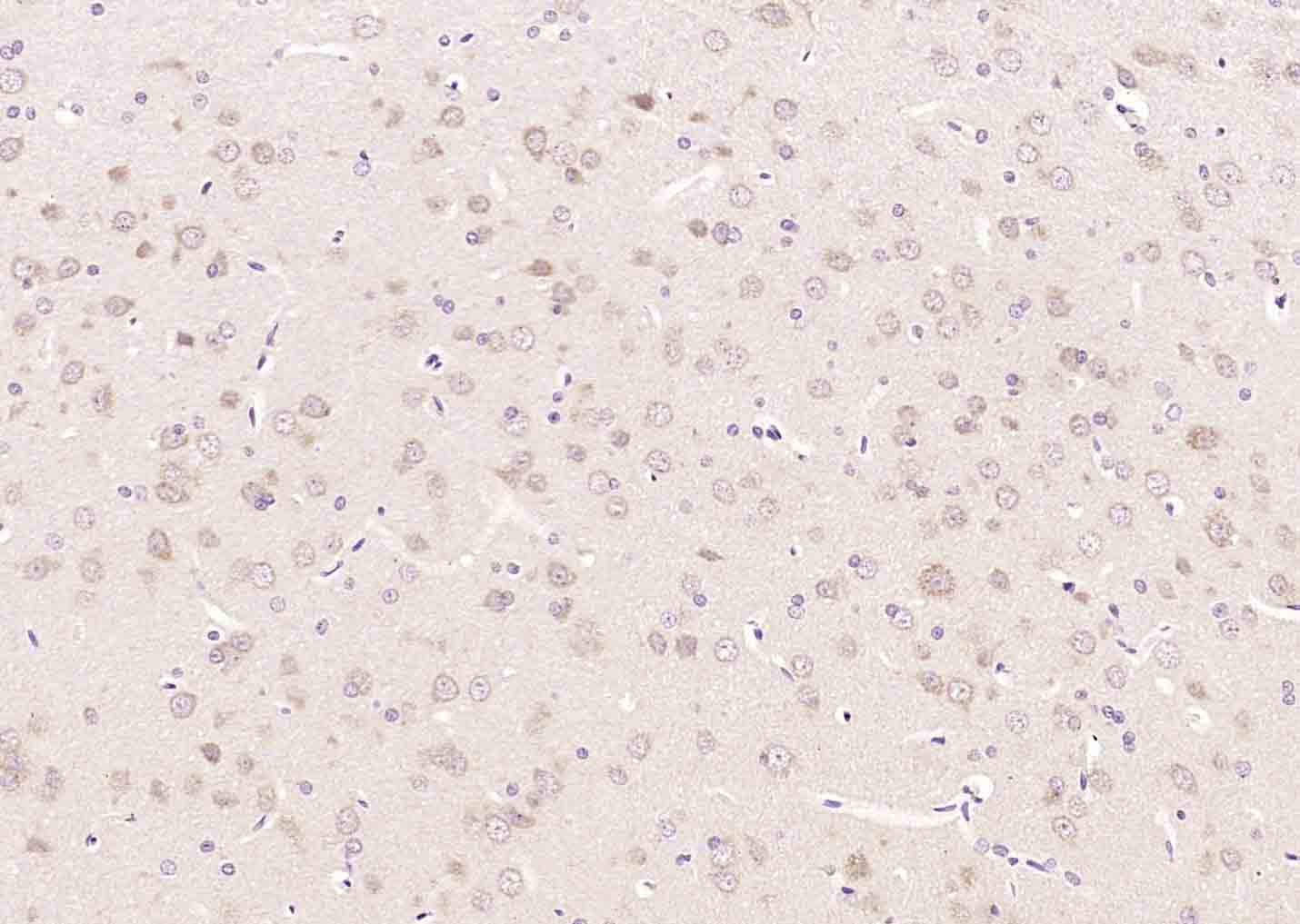 Paraformaldehyde-fixed, paraffin embedded (rat brain); Antigen retrieval by boiling in sodium citrate buffer (pH6.0) for 15min; Block endogenous peroxidase by 3% hydrogen peroxide for 20 minutes; Blocking buffer (normal goat serum) at 37°C for 30min; Antibody incubation with (MEK5) Polyclonal Antibody, Unconjugated (bs-4124R) at 1:200 overnight at 4°C, followed by operating according to SP Kit(Rabbit) (sp-0023) instructionsand DAB staining.