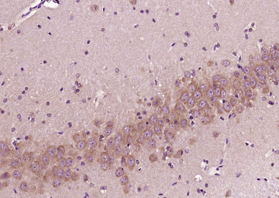 Paraformaldehyde-fixed, paraffin embedded (Rat brain); Antigen retrieval by boiling in sodium citrate buffer (pH6.0) for 15min; Block endogenous peroxidase by 3% hydrogen peroxide for 20 minutes; Blocking buffer (normal goat serum) at 37°C for 30min; Antibody incubation with (phospho-MAPK8 ( Thr183 + Tyr185)) Polyclonal Antibody, Unconjugated (bs-5487R) at 1:400 overnight at 4°C, followed by operating according to SP Kit(Rabbit) (sp-0023) instructionsand DAB staining.