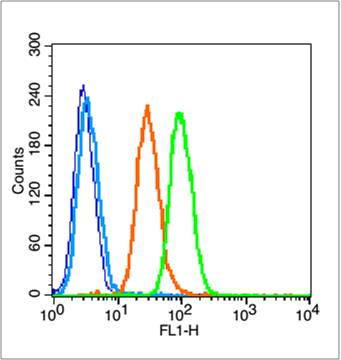 Secondary Antibody (white blue line): Goat anti-rabbit IgG-FITC,Dilution: 1μg /test.