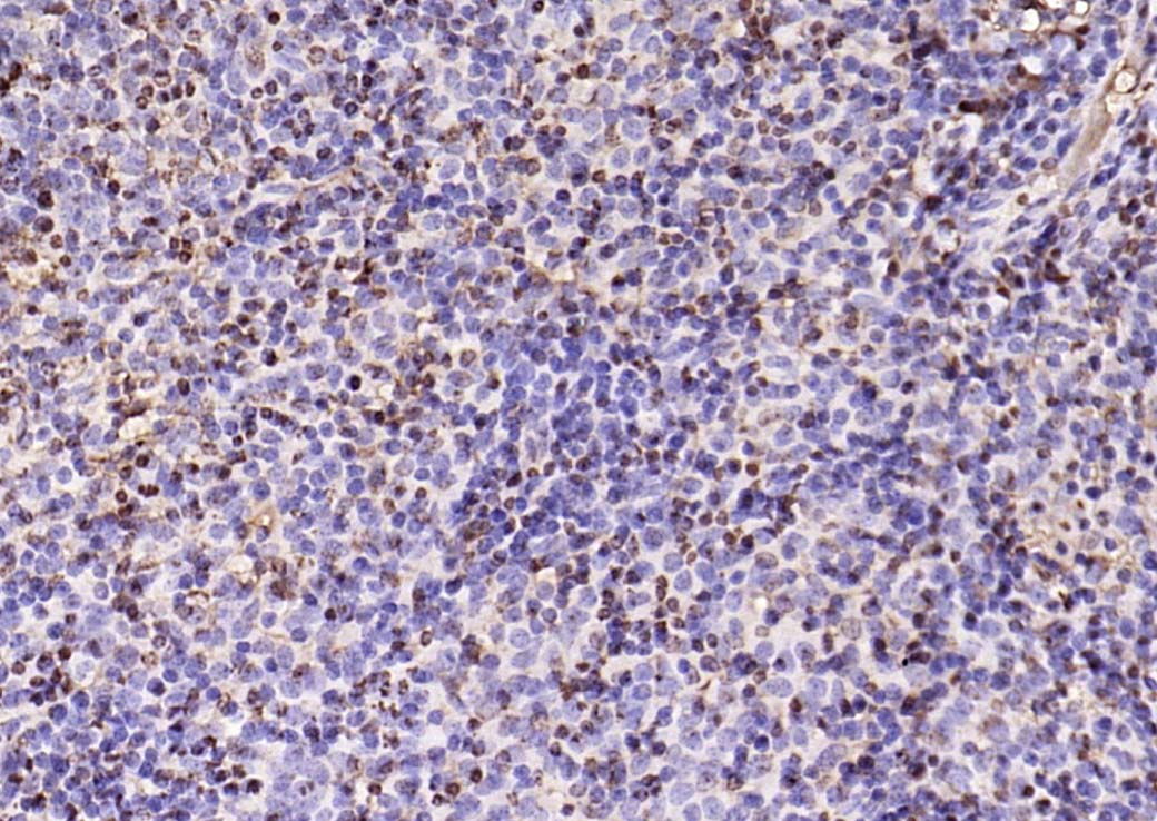 Paraformaldehyde-fixed, paraffin embedded (mouse lymphoid); Antigen retrieval by boiling in sodium citrate buffer (pH6.0) for 15min; Block endogenous peroxidase by 3% hydrogen peroxide for 20 minutes; Blocking buffer (normal goat serum) at 37°C for 30min; Antibody incubation with (Phospho-NFKB1 (Ser893)) Polyclonal Antibody, Unconjugated (bs-5513R) at 1:200 overnight at 4°C, followed by operating according to SP Kit(Rabbit) (sp-0023) instructionsand DAB staining.