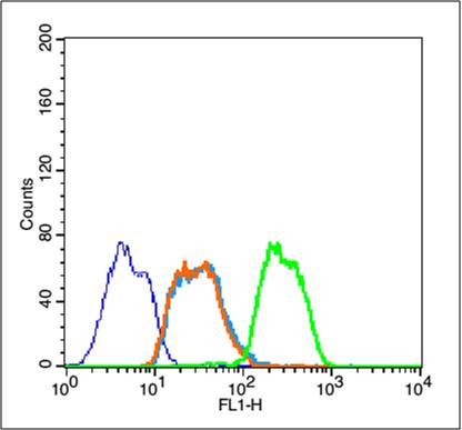 Secondary Antibody (white blue line): Goat anti-rabbit IgG-FITC,Dilution: 1μg /test.