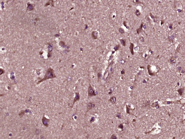 Paraformaldehyde-fixed, paraffin embedded (mouse brain); Antigen retrieval by boiling in sodium citrate buffer (pH6.0) for 15min; Block endogenous peroxidase by 3% hydrogen peroxide for 20 minutes; Blocking buffer (normal goat serum) at 37°C for 30min; Antibody incubation with (phospho-PKC delta (Ser645)) Polyclonal Antibody, Unconjugated (bs-5559R) at 1:200 overnight at 4°C, followed by operating according to SP Kit(Rabbit) (sp-0023) instructionsand DAB staining.