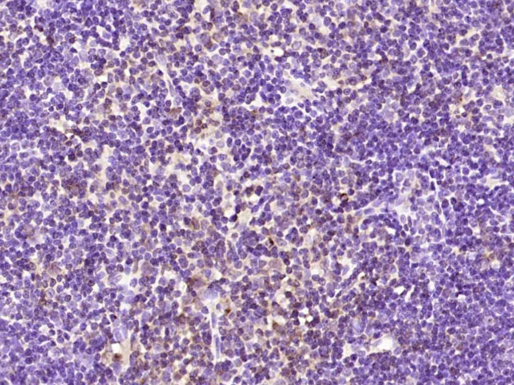 Paraformaldehyde-fixed, paraffin embedded (rat lymphoid); Antigen retrieval by boiling in sodium citrate buffer (pH6.0) for 15min; Block endogenous peroxidase by 3% hydrogen peroxide for 20 minutes; Blocking buffer (normal goat serum) at 37°C for 30min; Antibody incubation with (phospho-PKC delta (Ser645)) Polyclonal Antibody, Unconjugated (bs-5559R) at 1:200 overnight at 4°C, followed by operating according to SP Kit(Rabbit) (sp-0023) instructionsand DAB staining.