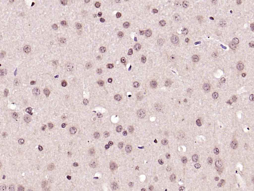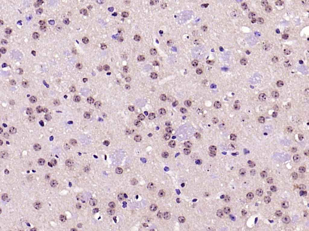 Paraformaldehyde-fixed, paraffin embedded (mouse brain); Antigen retrieval by boiling in sodium citrate buffer (pH6.0) for 15min; Block endogenous peroxidase by 3% hydrogen peroxide for 20 minutes; Blocking buffer (normal goat serum) at 37°C for 30min; Antibody incubation with (phospho-PKC beta 2 (Ser660)) Polyclonal Antibody, Unconjugated (bs-5566R ) at 1:200 overnight at 4°C, followed by operating according to SP Kit(Rabbit) (sp-0023) instructionsand DAB staining.