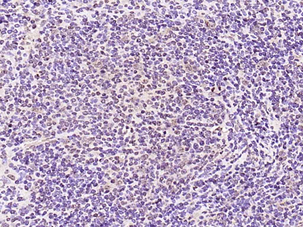 Paraformaldehyde-fixed, paraffin embedded (mouse spleen); Antigen retrieval by boiling in sodium citrate buffer (pH6.0) for 15min; Block endogenous peroxidase by 3% hydrogen peroxide for 20 minutes; Blocking buffer (normal goat serum) at 37°C for 30min; Antibody incubation with (phospho-PKC beta 2 (Ser660)) Polyclonal Antibody, Unconjugated (bs-5566R ) at 1:200 overnight at 4°C, followed by operating according to SP Kit(Rabbit) (sp-0023) instructionsand DAB staining.