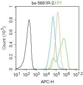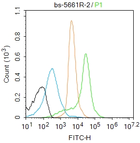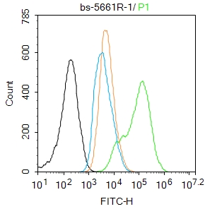 Primary Antibody (green line): Rabbit Anti-phospho-NFKB p65 (Thr435) antibody (bs-5661R)