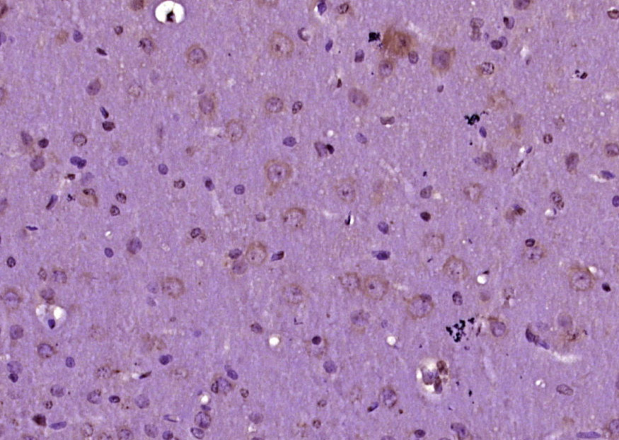 Paraformaldehyde-fixed, paraffin embedded (rat brain tissue); Antigen retrieval by boiling in sodium citrate buffer (pH6.0) for 15min; Block endogenous peroxidase by 3% hydrogen peroxide for 20 minutes; Blocking buffer (normal goat serum) at 37°C for 30min; Antibody incubation with (SMAD9) Polyclonal Antibody, Unconjugated (bs-4253R) at 1:400 overnight at 4°C, followed by operating according to SP Kit(Rabbit) (sp-0023) instructionsand DAB staining.