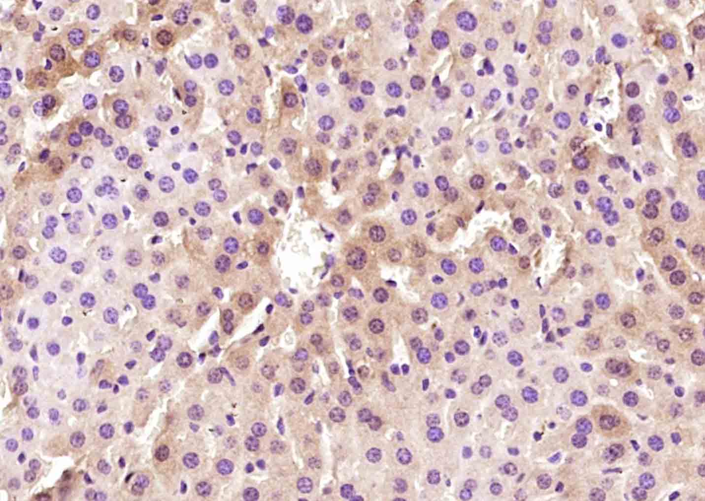 Paraformaldehyde-fixed, paraffin embedded (mouse liver); Antigen retrieval by boiling in sodium citrate buffer (pH6.0) for 15min; Block endogenous peroxidase by 3% hydrogen peroxide for 20 minutes; Blocking buffer (normal goat serum) at 37°C for 30min; Antibody incubation with (Selenium Binding Protein 1) Polyclonal Antibody, Unconjugated (bs-4200R) at 1:200 overnight at 4°C, followed by operating according to SP Kit(Rabbit) (sp-0023) instructionsand DAB staining.