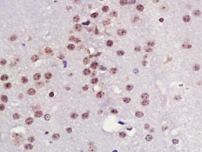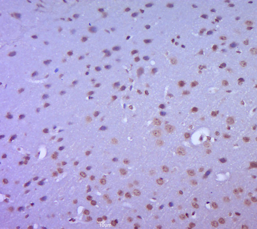 Paraformaldehyde-fixed, paraffin embedded (mouse brain tissue); Antigen retrieval by boiling in sodium citrate buffer (pH6.0) for 15min; Block endogenous peroxidase by 3% hydrogen peroxide for 20 minutes; Blocking buffer (normal goat serum) at 37°C for 30min; Antibody incubation with (TPX2) Polyclonal Antibody, Unconjugated (bs-4285R) at 1:400 overnight at 4°C, followed by a conjugated secondary (sp-0023) for 20 minutes and DAB staining.