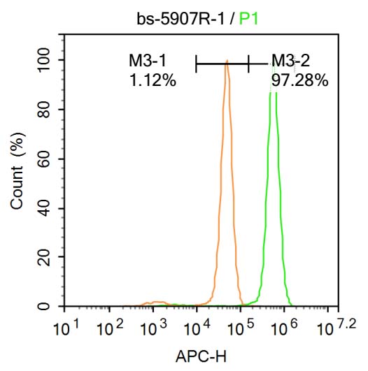 Primary Antibody (green line): Rabbit Anti-Ferritin Heavy Chain antibody (bs-5907R)