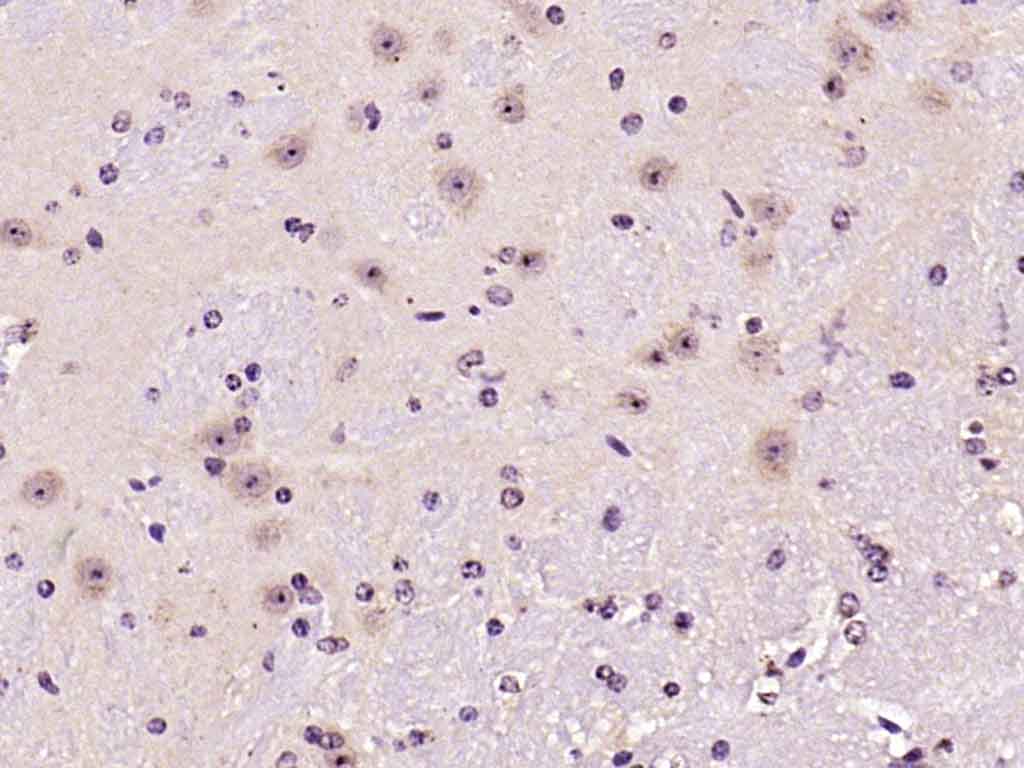 Paraformaldehyde-fixed, paraffin embedded (mouse brain); Antigen retrieval by boiling in sodium citrate buffer (pH6.0) for 15min; Block endogenous peroxidase by 3% hydrogen peroxide for 20 minutes; Blocking buffer (normal goat serum) at 37°C for 30min; Antibody incubation with (FTH1) Polyclonal Antibody, Unconjugated (bs-5907R) at 1:200 overnight at 4°C, followed by operating according to SP Kit(Rabbit) (sp-0023) instructionsand DAB staining.
