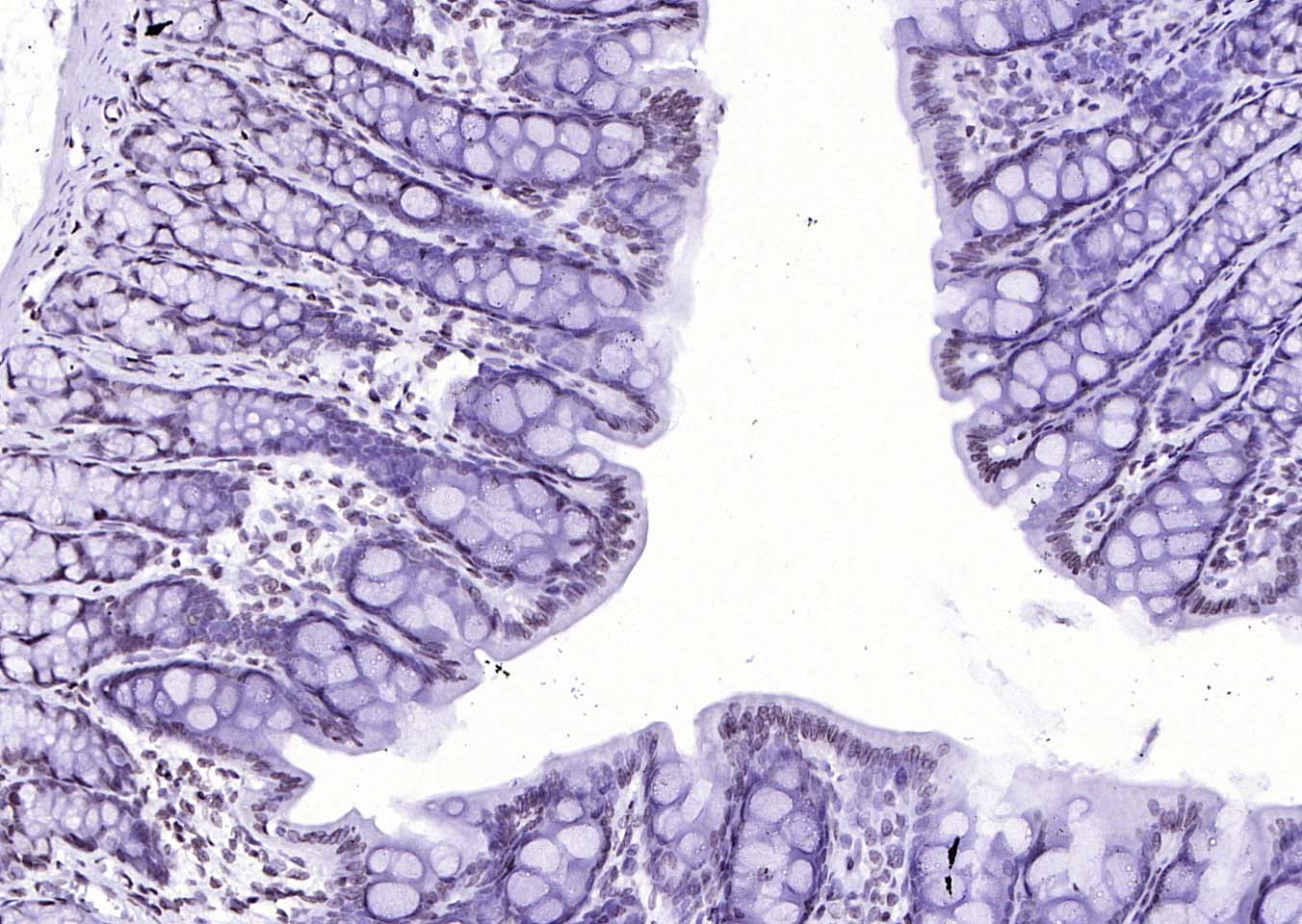 Paraformaldehyde-fixed, paraffin embedded (rat colon); Antigen retrieval by boiling in sodium citrate buffer (pH6.0) for 15min; Block endogenous peroxidase by 3% hydrogen peroxide for 20 minutes; Blocking buffer (normal goat serum) at 37°C for 30min; Antibody incubation with (MYB) Polyclonal Antibody, Unconjugated (bs-5978R) at 1:200 overnight at 4°C, followed by operating according to SP Kit(Rabbit) (sp-0023) instructionsand DAB staining.