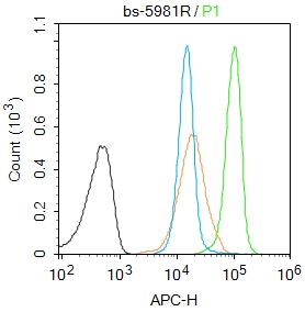 Primary Antibody (green line): Rabbit Anti-phospho-p107 (Thr369) antibody (bs-5981R)