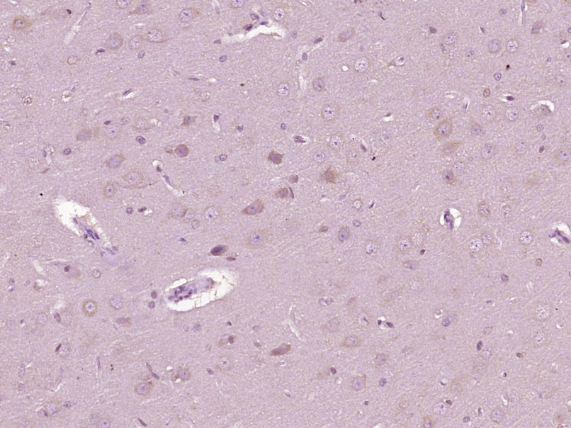 Paraformaldehyde-fixed, paraffin embedded (Rat brain); Antigen retrieval by boiling in sodium citrate buffer (pH6.0) for 15min; Block endogenous peroxidase by 3% hydrogen peroxide for 20 minutes; Blocking buffer (normal goat serum) at 37°C for 30min; Antibody incubation with (G21 protein/NPR2L) Polyclonal Antibody, Unconjugated (bs-6079R) at 1:400 overnight at 4°C, followed by operating according to SP Kit(Rabbit) (sp-0023) instructionsand DAB staining.
