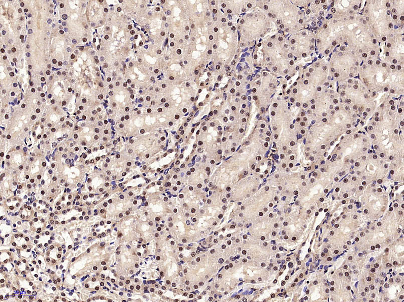 Paraformaldehyde-fixed, paraffin embedded (Rat kidney); Antigen retrieval by microwave in sodium citrate buffer (pH6.0) ; Block endogenous peroxidase by 3% hydrogen peroxide for 30 minutes; Blocking buffer (3% BSA) at RT for 30min; Antibody incubation with (PHAP1) Polyclonal Antibody, Unconjugated (bs-6083R) at 1:400 overnight at 4℃, followed by conjugation to the secondary antibody (labeled with HRP)and DAB staining.