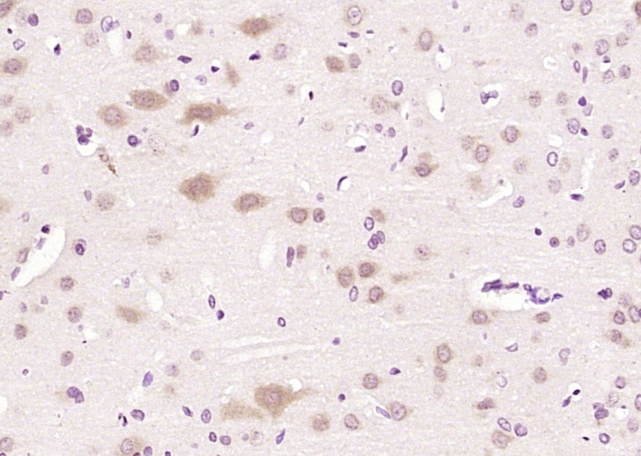 Paraformaldehyde-fixed, paraffin embedded (rat brain); Antigen retrieval by boiling in sodium citrate buffer (pH6.0) for 15min; Block endogenous peroxidase by 3% hydrogen peroxide for 20 minutes; Blocking buffer (normal goat serum) at 37°C for 30min; Antibody incubation with (RIN1) Polyclonal Antibody, Unconjugated (bs-6094R) at 1:200 overnight at 4°C, followed by operating according to SP Kit(Rabbit) (sp-0023) instructionsand DAB staining.