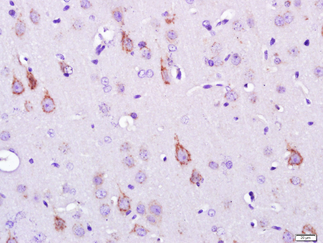 Paraformaldehyde-fixed, paraffin embedded (rat brain); Antigen retrieval by boiling in sodium citrate buffer (pH6.0) for 15min; Block endogenous peroxidase by 3% hydrogen peroxide for 20 minutes; Blocking buffer (normal goat serum) at 37°C for 30min; Antibody incubation with (SEMA6D) Polyclonal Antibody, Unconjugated (bs-2943R) at 1:500 overnight at 4°C, followed by a conjugated secondary (sp-0023) for 20 minutes and DAB staining.