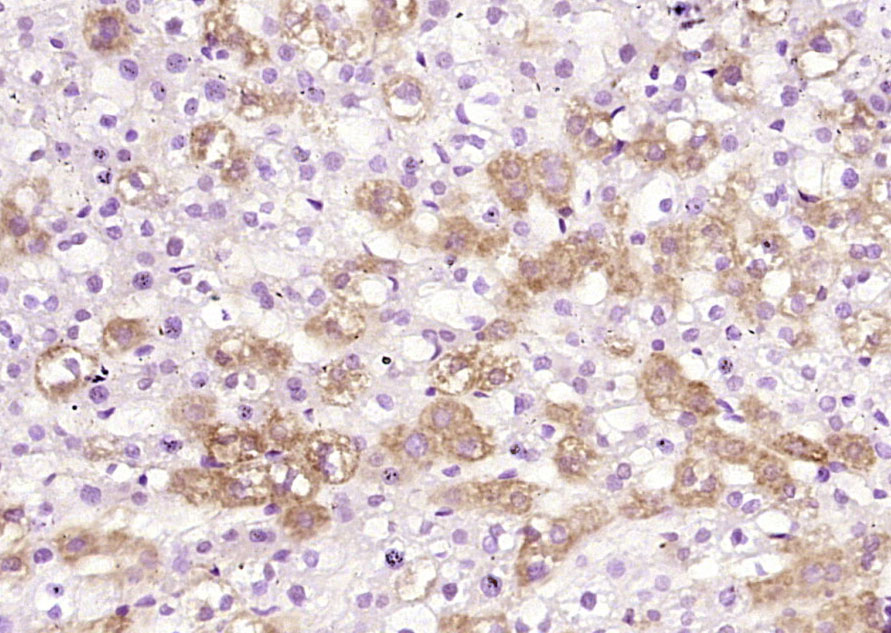 Paraformaldehyde-fixed, paraffin embedded (human liver); Antigen retrieval by boiling in sodium citrate buffer (pH6.0) for 15min; Block endogenous peroxidase by 3% hydrogen peroxide for 20 minutes; Blocking buffer (normal goat serum) at 37°C for 30min; Antibody incubation with (Alpha 2 antiplasmin) Polyclonal Antibody, Unconjugated (bs-6188R) at 1:200 overnight at 4°C, followed by operating according to SP Kit(Rabbit) (sp-0023) instructionsand DAB staining.