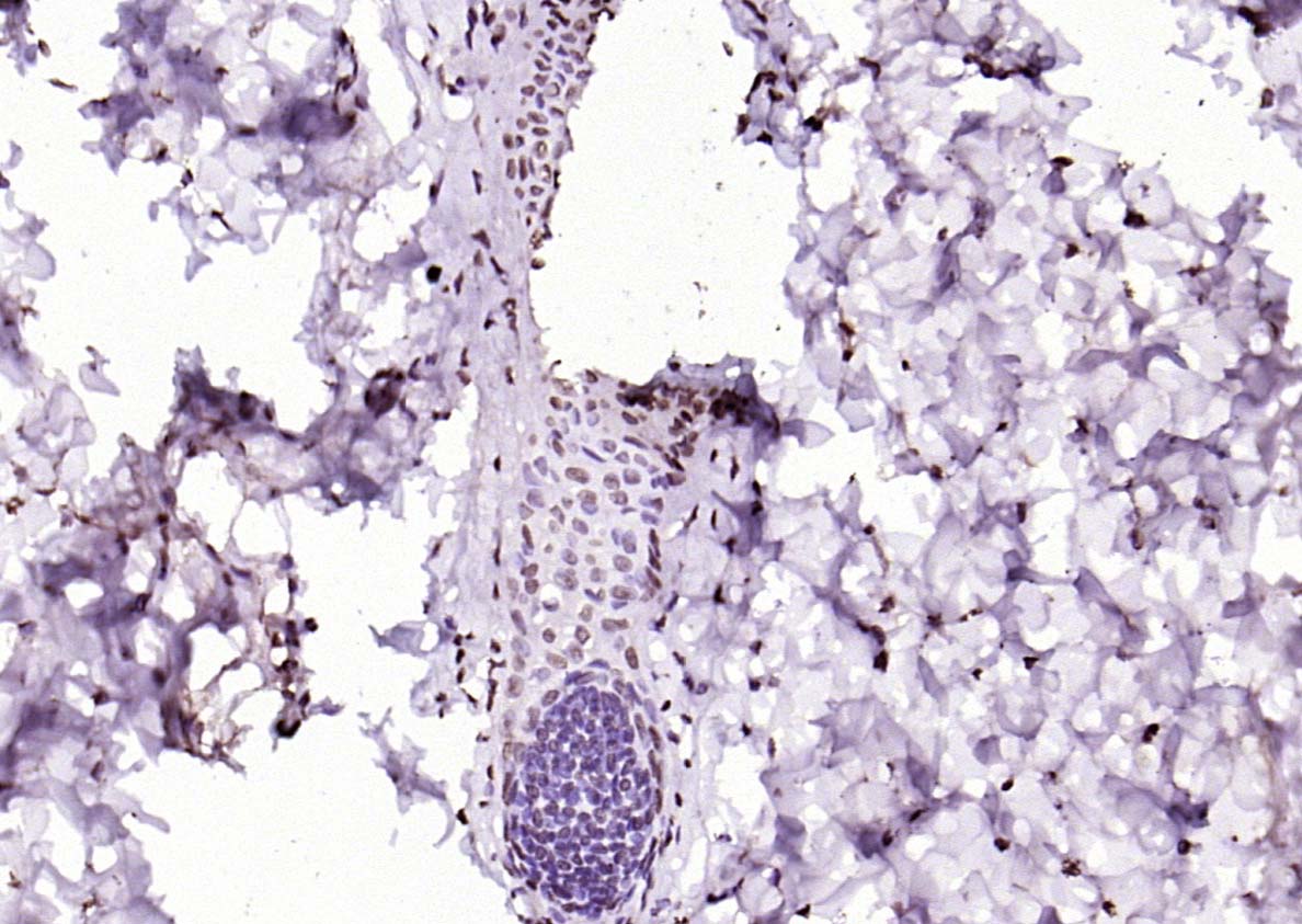 Paraformaldehyde-fixed, paraffin embedded (mouse skin); Antigen retrieval by boiling in sodium citrate buffer (pH6.0) for 15min; Block endogenous peroxidase by 3% hydrogen peroxide for 20 minutes; Blocking buffer (normal goat serum) at 37°C for 30min; Antibody incubation with (SIK1) Polyclonal Antibody, Unconjugated (bs-6252R) at 1:200 overnight at 4°C, followed by operating according to SP Kit(Rabbit) (sp-0023) instructionsand DAB staining.