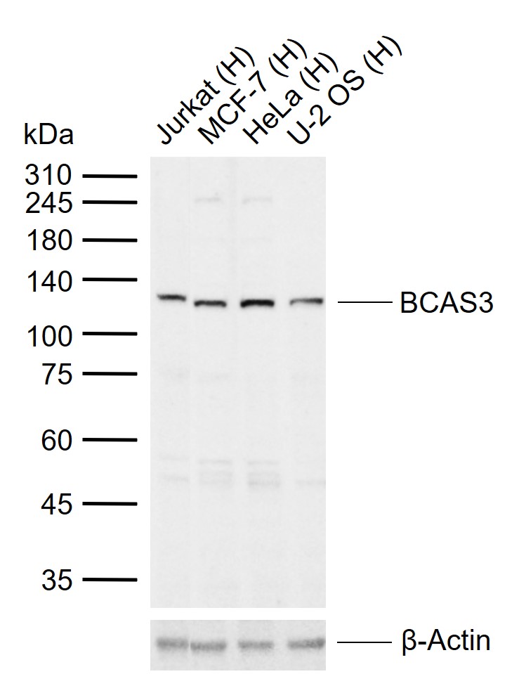Primary: Anti-BCAS3 (bs-6605R) at 1/1000 dilution