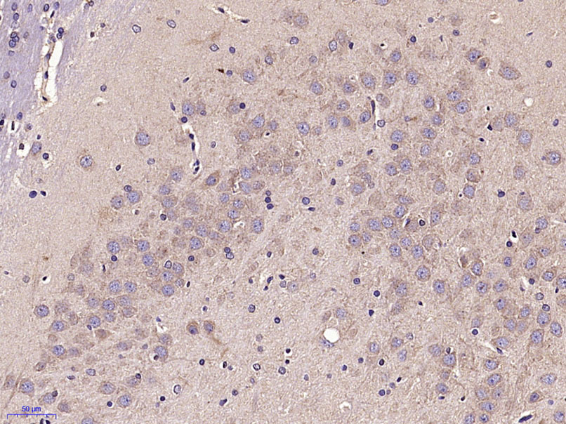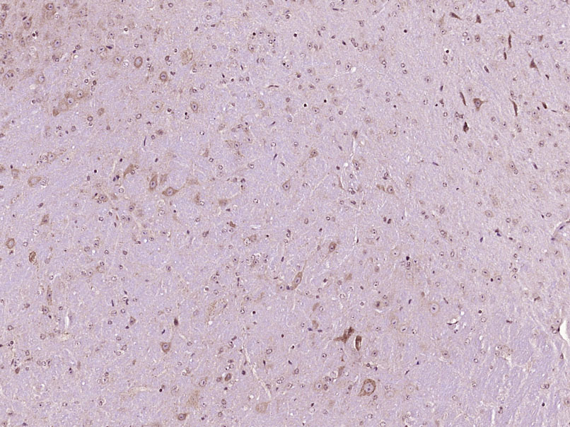 Paraformaldehyde-fixed, paraffin embedded (Mouse brain); Antigen retrieval by boiling in sodium citrate buffer (pH6.0) for 15min; Block endogenous peroxidase by 3% hydrogen peroxide for 20 minutes; Blocking buffer (normal goat serum) at 37°C for 30min; Antibody incubation with (ADM2) Polyclonal Antibody, Unconjugated (bs-2985R) at 1:400 overnight at 4°C, followed by operating according to SP Kit(Rabbit) (sp-0023) instructionsand DAB staining.