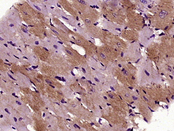 Paraformaldehyde-fixed, paraffin embedded (mouse heart tissue); Antigen retrieval by boiling in sodium citrate buffer (pH6.0) for 15min; Block endogenous peroxidase by 3% hydrogen peroxide for 20 minutes; Blocking buffer (normal goat serum) at 37°C for 30min; Antibody incubation with (LECT1) Polyclonal Antibody, Unconjugated (bs-7516R) at 1:400 overnight at 4°C, followed by operating according to SP Kit(Rabbit) (sp-0023) instructionsand DAB staining.