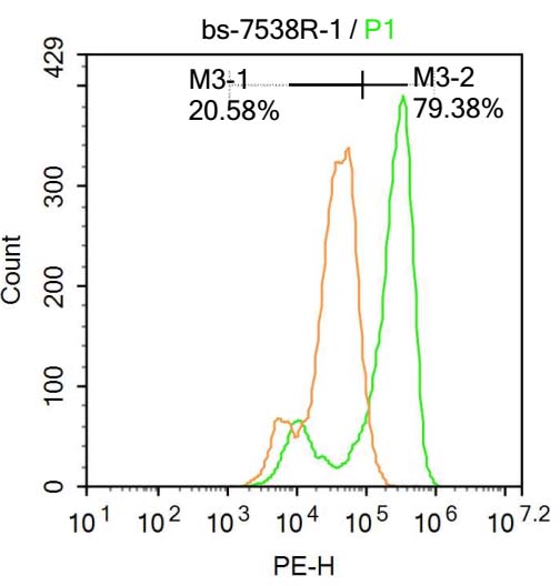Primary Antibody (green line): Rabbit Anti-TRIB3 antibody (bs-7538R)
