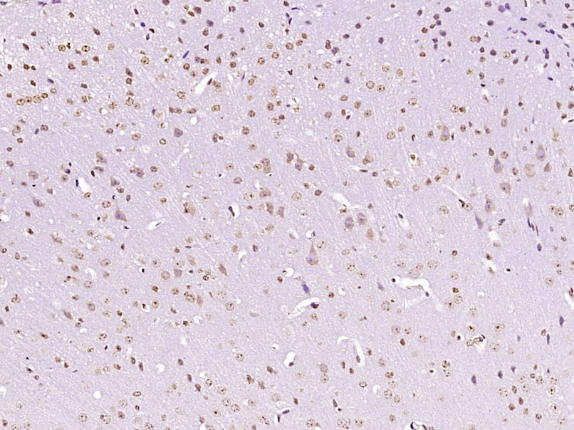 Paraformaldehyde-fixed, paraffin embedded (Mouse brain); Antigen retrieval by boiling in sodium citrate buffer (pH6.0) for 15min; Block endogenous peroxidase by 3% hydrogen peroxide for 20 minutes; Blocking buffer (normal goat serum) at 37°C for 30min; Antibody incubation with (NET1) Polyclonal Antibody, Unconjugated (bs-6331R) at 1:400 overnight at 4°C, followed by operating according to SP Kit(Rabbit) (sp-0023) instructionsand DAB staining.
