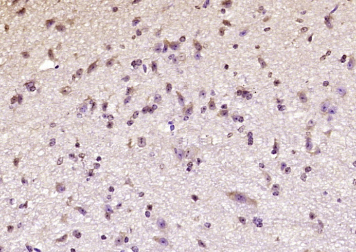 Paraformaldehyde-fixed, paraffin embedded (mouse cerebellum tissue); Antigen retrieval by boiling in sodium citrate buffer (pH6.0) for 15min; Block endogenous peroxidase by 3% hydrogen peroxide for 20 minutes; Blocking buffer (normal goat serum) at 37°C for 30min; Antibody incubation with (KAT13D) Polyclonal Antibody, Unconjugated (bs-6346R) at 1:200 overnight at 4°C, followed by operating according to SP Kit(Rabbit) (sp-0023) instructionsand DAB staining.