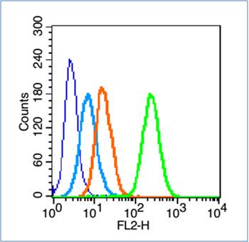 Secondary Antibody (white blue line): Goat anti-rabbit IgG-PE;Dilution: 1μg /test.