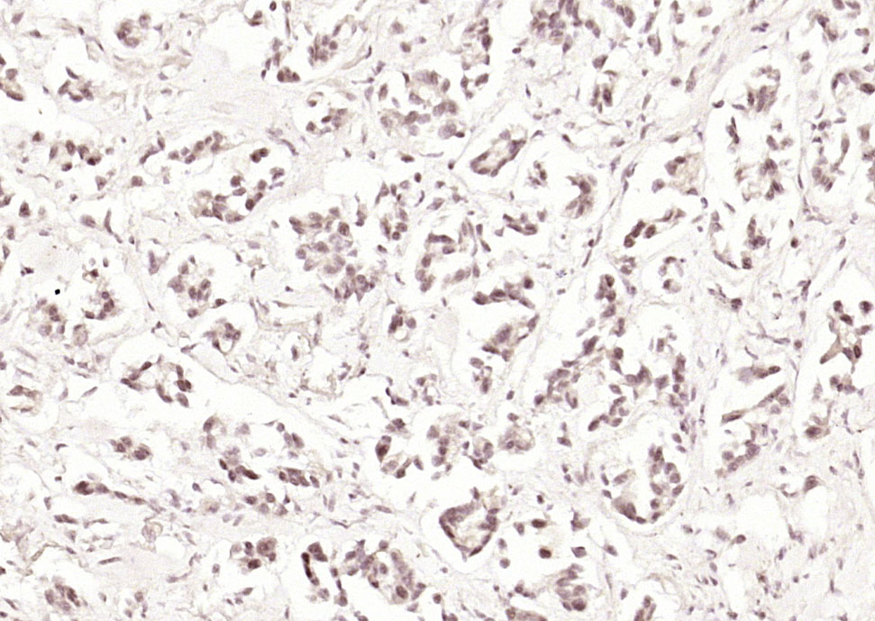 Paraformaldehyde-fixed, paraffin embedded (human gastric carcinoma); Antigen retrieval by boiling in sodium citrate buffer (pH6.0) for 15min; Block endogenous peroxidase by 3% hydrogen peroxide for 20 minutes; Blocking buffer (normal goat serum) at 37°C for 30min; Antibody incubation with (RERE) Polyclonal Antibody, Unconjugated (bs-7077R) at 1:200 overnight at 4°C, followed by operating according to SP Kit(Rabbit) (sp-0023) instructionsand DAB staining.