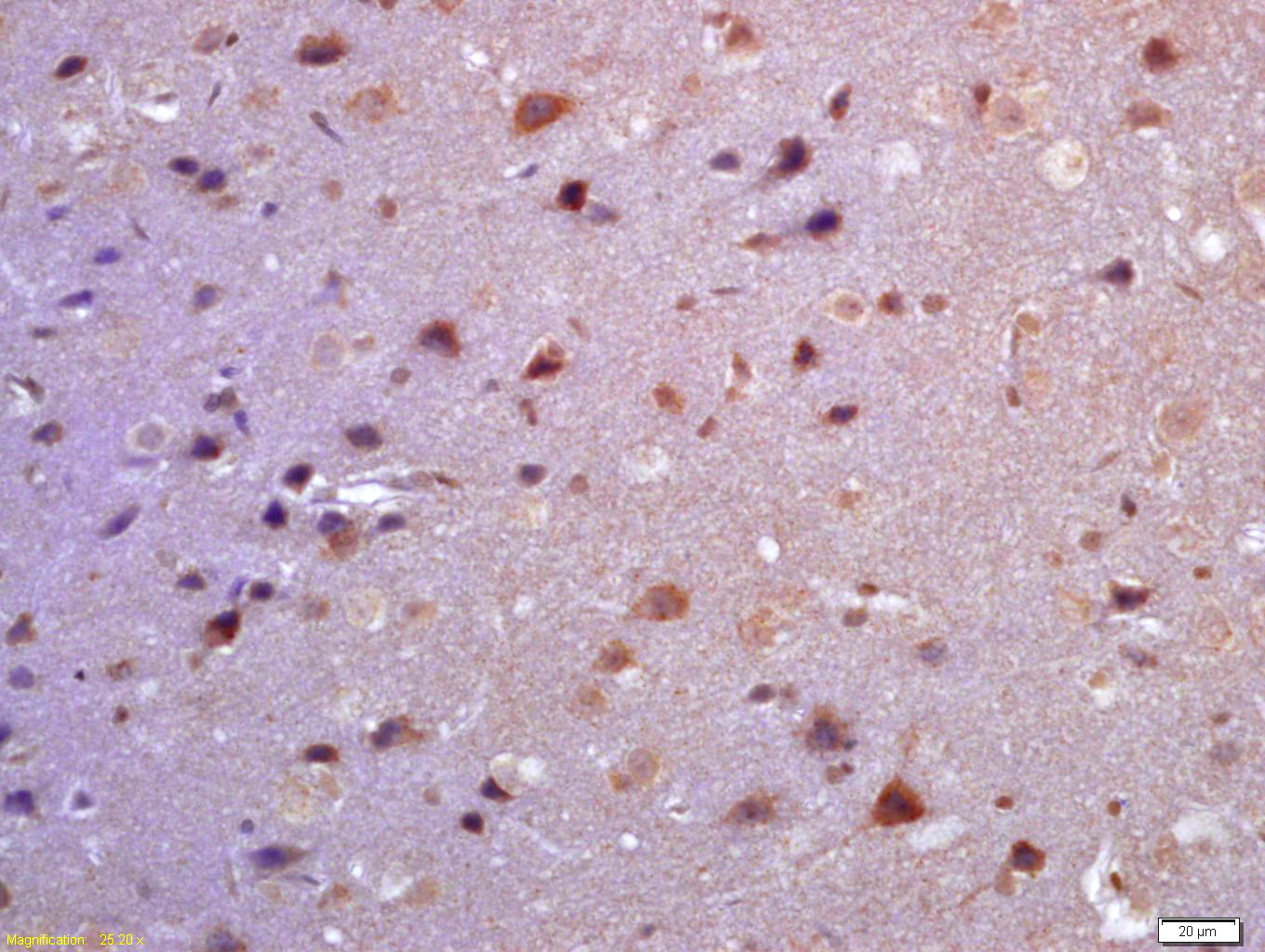 Paraformaldehyde-fixed, paraffin embedded (human brain); Antigen retrieval by boiling in sodium citrate buffer (pH6.0) for 15min; Block endogenous peroxidase by 3% hydrogen peroxide for 20 minutes; Blocking buffer (normal goat serum) at 37°C for 30min; Antibody incubation with (TSSC3) Polyclonal Antibody, Unconjugated (bs-6884R) at 1:200 overnight at 4°C, followed by operating according to SP Kit(Rabbit) (sp-0023) instructionsand DAB staining.