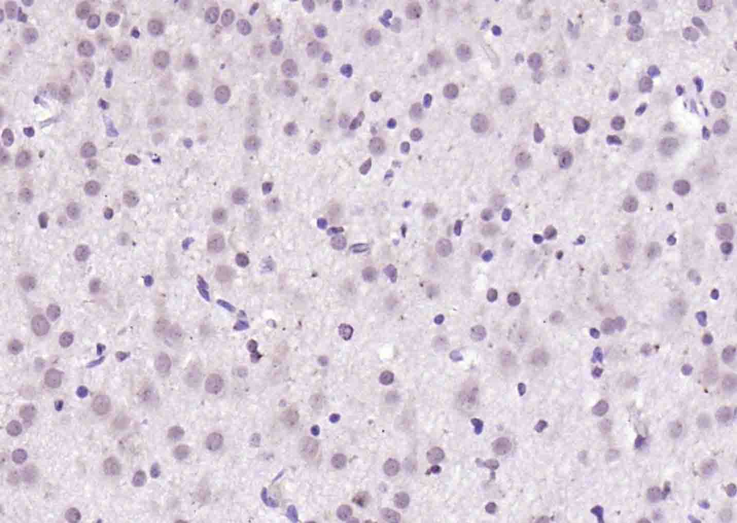 Paraformaldehyde-fixed, paraffin embedded (mouse brain); Antigen retrieval by boiling in sodium citrate buffer (pH6.0) for 15min; Block endogenous peroxidase by 3% hydrogen peroxide for 20 minutes; Blocking buffer (normal goat serum) at 37°C for 30min; Incubation with (RANBP9) Polyclonal Antibody, Unconjugated (bs-7715R) at 1:200 overnight at 4°C, followed by operating according to SP Kit(Rabbit) (sp-0023) instructionsand DAB staining.