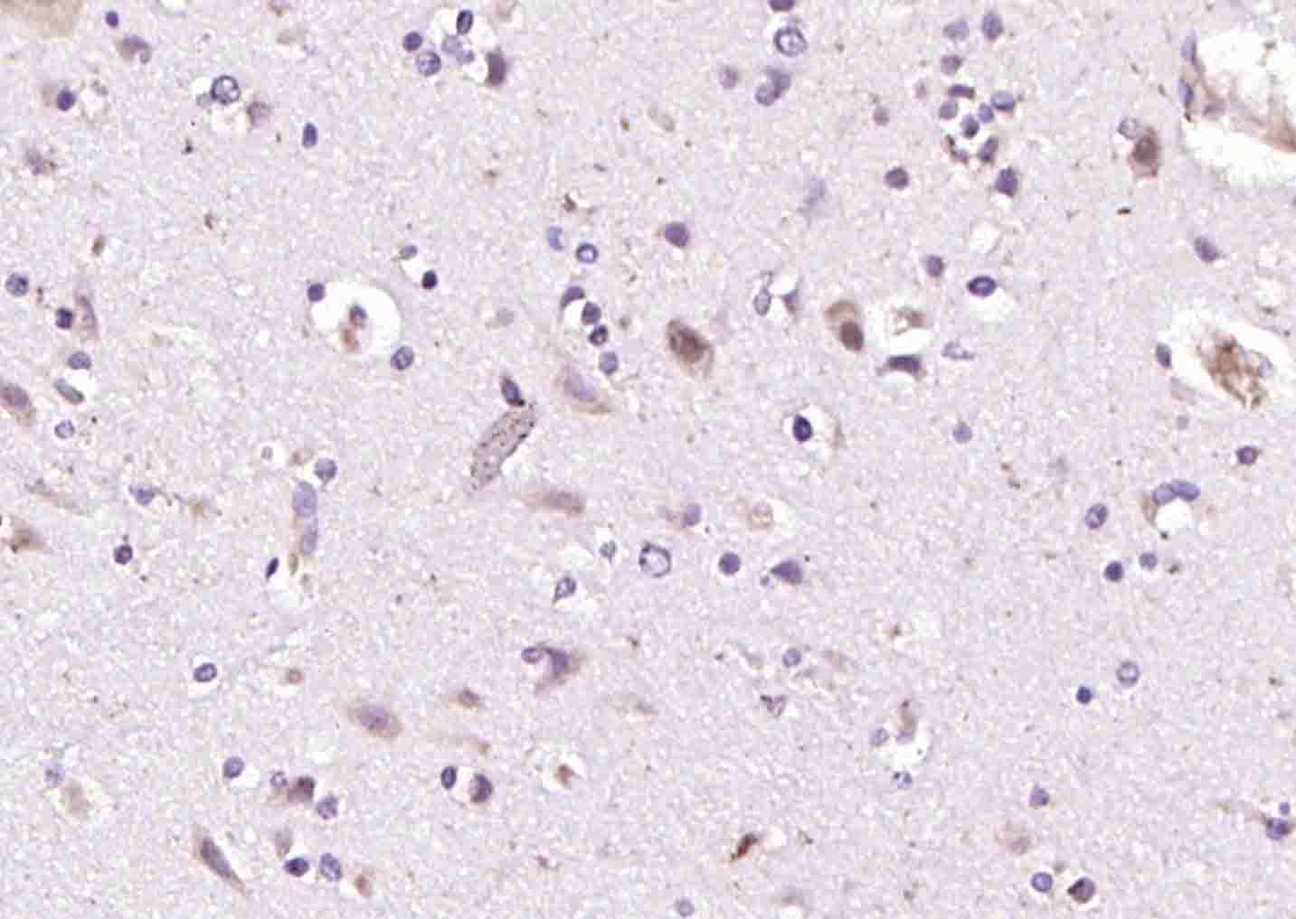 Paraformaldehyde-fixed, paraffin embedded (human brain); Antigen retrieval by boiling in sodium citrate buffer (pH6.0) for 15min; Block endogenous peroxidase by 3% hydrogen peroxide for 20 minutes; Blocking buffer (normal goat serum) at 37°C for 30min; Incubation with (RANBP9) Polyclonal Antibody, Unconjugated (bs-7715R) at 1:200 overnight at 4°C, followed by operating according to SP Kit(Rabbit) (sp-0023) instructionsand DAB staining.