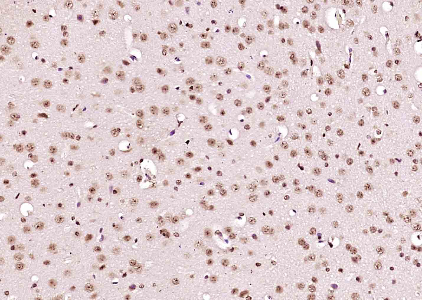 Paraformaldehyde-fixed, paraffin embedded (mouse brain); Antigen retrieval by boiling in sodium citrate buffer (pH6.0) for 15min; Block endogenous peroxidase by 3% hydrogen peroxide for 20 minutes; Blocking buffer (normal goat serum) at 37°C for 30min; Antibody incubation with (NEK7) Polyclonal Antibody, Unconjugated (bs-7758R) at 1:200 overnight at 4°C, followed by operating according to SP Kit(Rabbit) (sp-0023) instructionsand DAB staining.