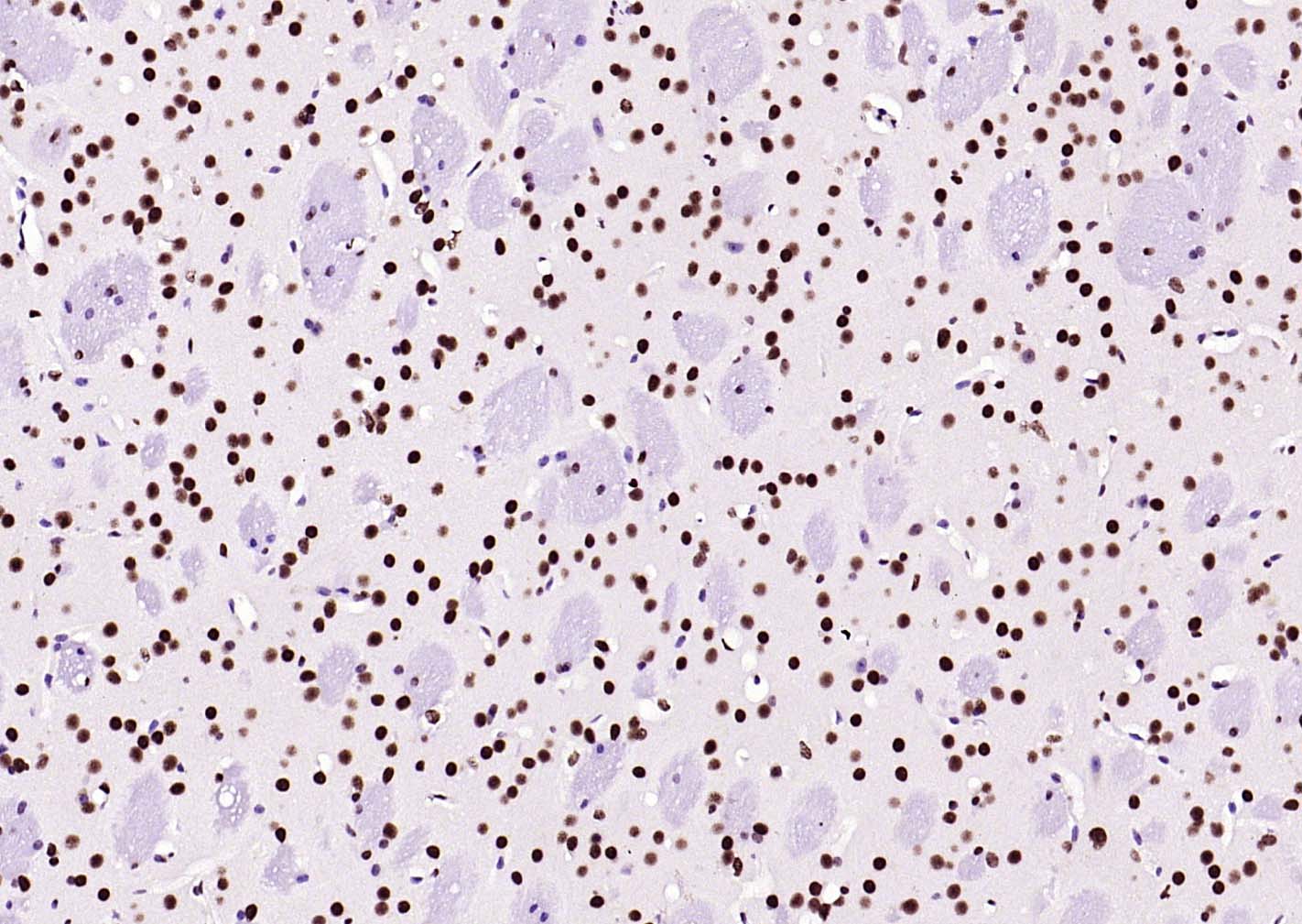 Paraformaldehyde-fixed, paraffin embedded (rat brain); Antigen retrieval by boiling in sodium citrate buffer (pH6.0) for 15min; Block endogenous peroxidase by 3% hydrogen peroxide for 20 minutes; Blocking buffer (normal goat serum) at 37°C for 30min; Incubation with (BRD7) Polyclonal Antibody, Unconjugated (bs-7779R) at 1:200 overnight at 4°C, followed by operating according to SP Kit(Rabbit) (sp-0023) instructionsand DAB staining.