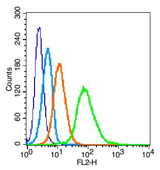Blank control: U937(fixed with 2% paraformaldehyde (10 min)). Primary Antibody: Rabbit Anti-CDC123 antibody(bs-7781R), Dilution: 1μg in 100 μL 1X PBS containing 0.5% BSA; Isotype Control Antibody: Rabbit IgG (orange) ,used under the same conditions. Secondary Antibody: Goat anti-rabbit IgG-PE(white blue), Dilution: 1:200 in 1 X PBS containing 0.5% BSA.