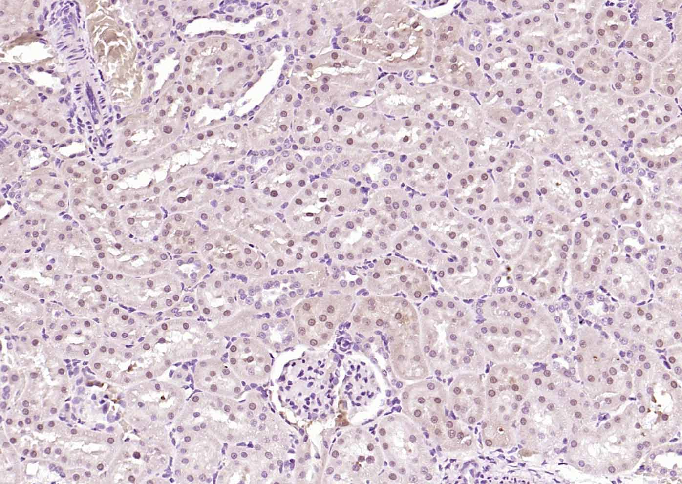 Paraformaldehyde-fixed, paraffin embedded (rat kidney); Antigen retrieval by boiling in sodium citrate buffer (pH6.0) for 15min; Block endogenous peroxidase by 3% hydrogen peroxide for 20 minutes; Blocking buffer (normal goat serum) at 37°C for 30min; Incubation with (KIFC1) Polyclonal Antibody, Unconjugated (bs-7805R) at 1:200 overnight at 4°C, followed by operating according to SP Kit(Rabbit) (sp-0023) instructionsand DAB staining.
